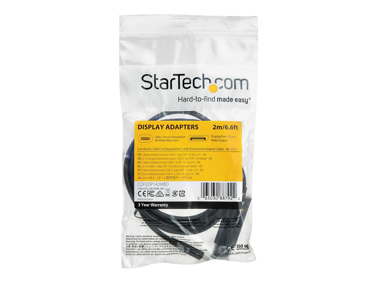| Popis výrobku | StarTech.com 6ft/2m USB C to DisplayPort 1.4 Cable 8K 60Hz/4K, Bidirectional DP to USB-C or USB-C to DP Reversible Video Adapter Cable, HBR3/HDR/DSC, USB Type C/Thunderbolt 3 Monitor Cable - 8K USB-C to DP Cable - kabel DisplayPort - USB-C do DisplayPort - 2 m |