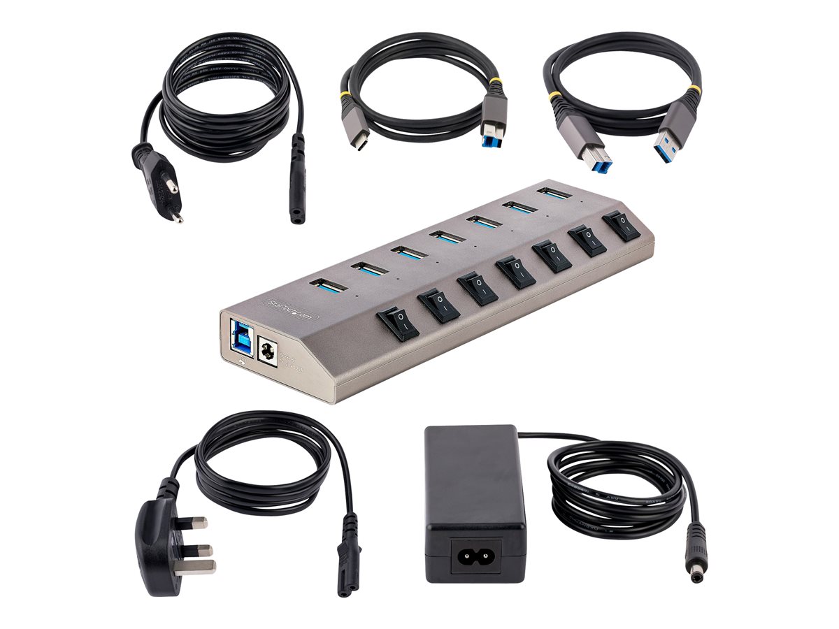 | Popis výrobku | StarTech.com 7-Port Self-Powered USB-C Hub with Individual On/Off Switches, USB 3.0 5Gbps Expansion Hub w/Power Supply, Desktop/Laptop USB-C to USB-A Hub, 7x BC 1.2 (1.5A), USB Type C Hub - USB-C/A Host Cables (5G7AIBS-USB-HUB-EU) - rozbočovač - 7 porty |