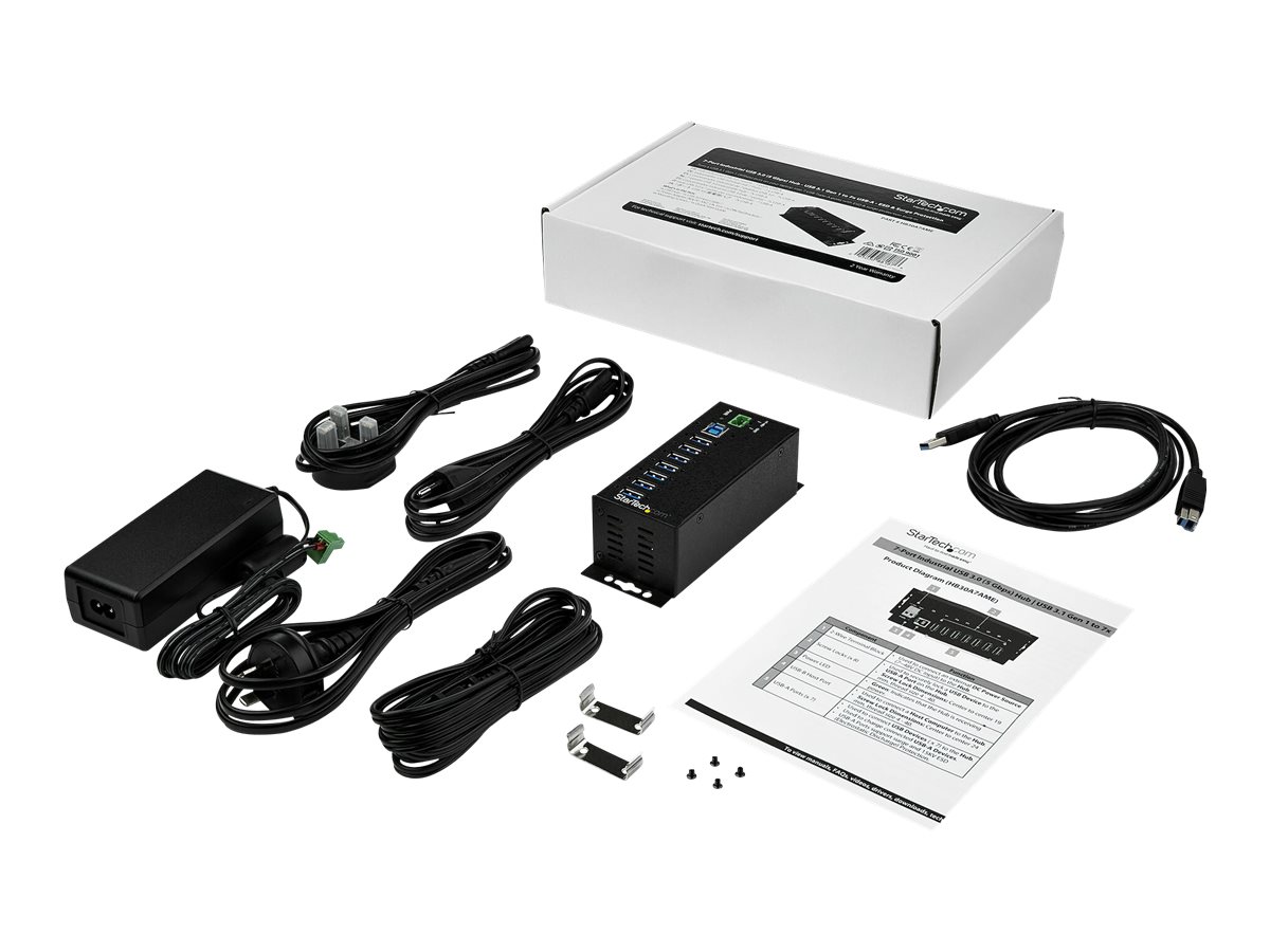 | Popis výrobku | StarTech.com 7 Port USB Hub with Power Adapter, Surge Protection, Metal Industrial USB 3.0 Data Transfer Hub, Din Rail, Wall or Desk Mountable, High Speed USB 3.1/USB 3.2 Gen 1 5Gbps Hub - Windows/macOS/Linux (HB30A7AME) - rozbočovač - 7 porty - kompatibilní s TAA |