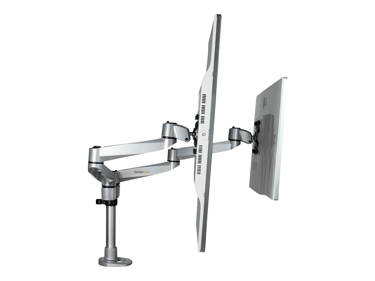 | Popis výrobku | StarTech.com Desk Mount Dual Monitor Arm, Premium Articulating Monitor Arm, up to 27" VESA Mount Displays, Height Adjustable Monitor Mount, Rotating/Swivel/Tilt, Desk Clamp/Grommet, Silver - Easy & Quick Assembly (ARMDUALPS) montážní sada - nastavitelné rameno - pro 2 LCD displeje - stříbrná - kompatibilní s TAA |