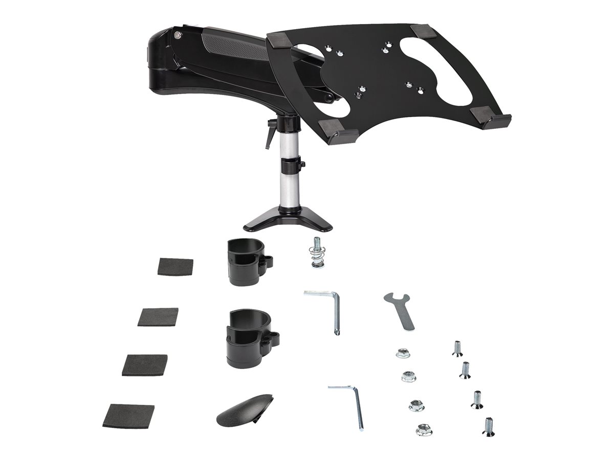 | Obsah balení | Hex key (3mm), klíč, notebook tray, gumové podložky, 4 x M5 x 12 mm screws, swivel arm, sestava tyče, 4 x M5 nuts, spring arm assembly, 2 x cable management clips, M6 x 25mm screw assembly, decorative cap, 5mm hex key with screwdriver |