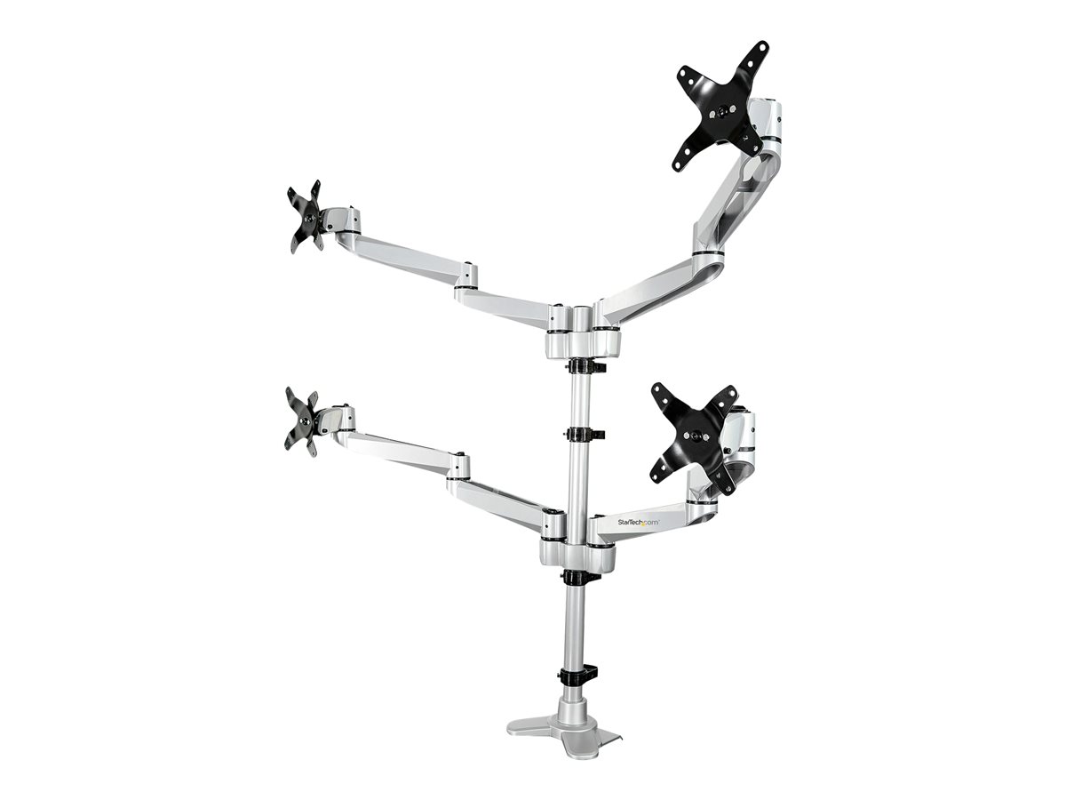 | Popis výrobku | StarTech.com Desk Mount Quad Monitor Arm, Premium Articulating VESA 4 Monitor Mount 2x2 up to 27", Ergonomic Height Adjustable Pole Mount, Tilt/Swivel/Rotate, C-Clamp/Grommet, Silver - Heavy-duty VESA Mount (ARMQUADPS) montážní sada - nastavitelné rameno - pro 4 monitory - stříbrná - kompatibilní s TAA |