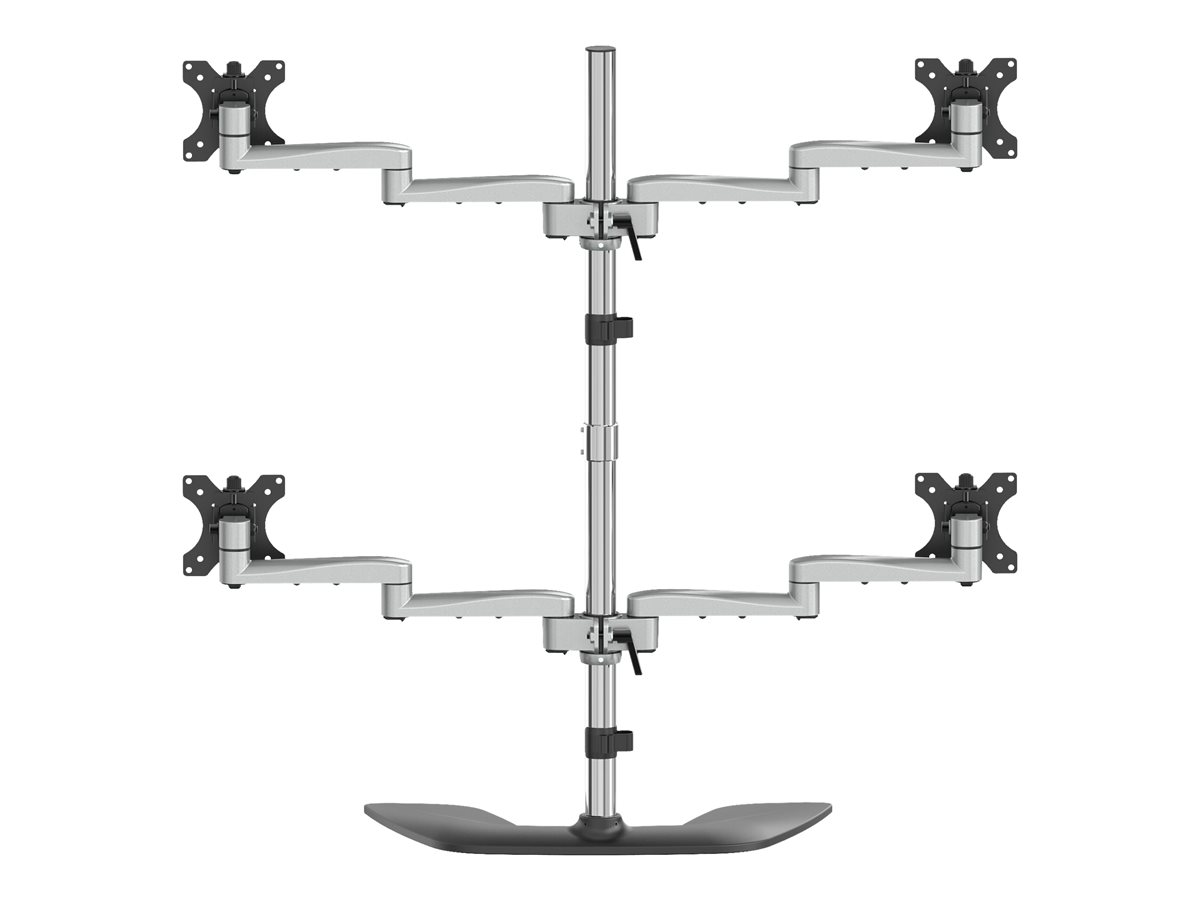 | Popis výrobku | StarTech.com Desktop Quad Monitor Stand, Ergonomic VESA 4 Monitor Arm (2x2) up to 32", Free Standing Articulating Universal Pole Mount, Height Adjustable/Tilt/Swivel/Rotate, Silver - Heavy-duty VESA Mount (ARMQUADSS) stojan - nastavitelné rameno - pro 4 monitory |