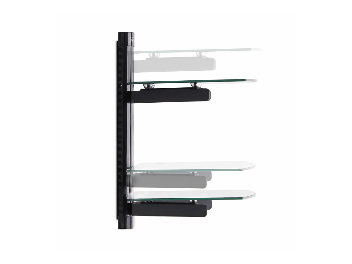 | Organize A/V Equipment On Black Tempered Glass Shelves | |