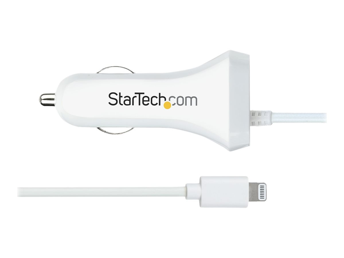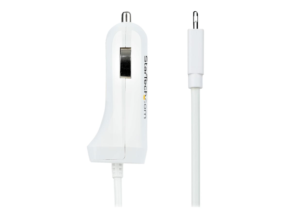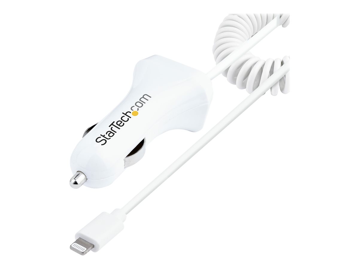 | Popis výrobku | StarTech.com Lightning Car Charger with 1m Coiled Lightning Cable, 12W, White, 2 Port USB Car Charger Adapter for Phones and Tablets, In Car Apple iPhone/iPad Charger w/ Built-in Cord - Dual USB Car Charger (USBLT2PCARW2) napájecí adaptér do auta - USB, Lightning - 12 Watt |
