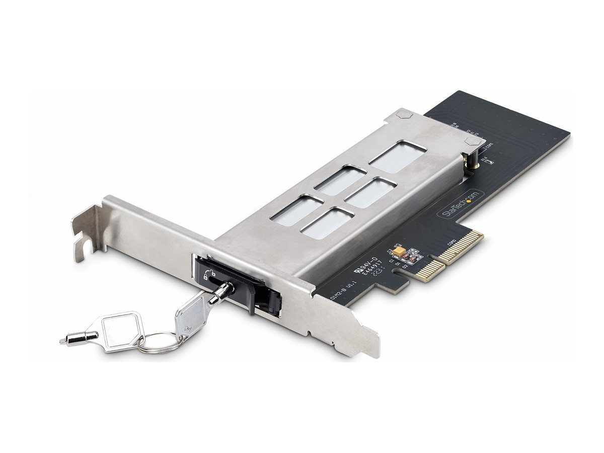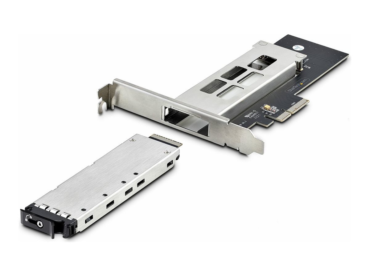 | Popis výrobku | StarTech.com M.2 NVMe SSD to PCIe x4 Mobile Rack/Backplane with Removable Tray for PCI Express Expansion Slot, Tool-less Installation, PCIe 4.0/3.0 Hot-Swap Drive Bay, Key Lock - 2 Keys Included - adaptér rozhraní - M.2 NVMe Card / PCIe 4.0 (NVMe) - PCIe 4.0 x4 |