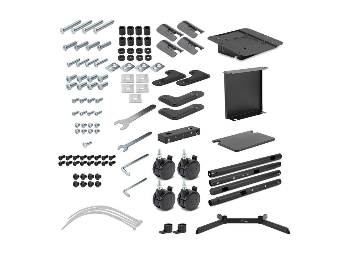 | Obsah balení | 8 x mezikusy (malé), vzpery (velké), 4 x zámkové kolečka, 2 x základní sloupy, Klíč M6, základna, 2 x horní sloupce, přední kryt úchytu, VESA montážní deska, police na vybavení, 2 úchyty pro police, šroub M6x18, 16 x šrouby M6x12, 8 x šrouby M8x8, 5 x svorky a držáky kabelů, 2 x prodlužovací ramena VESA (pravé), 2 x prodlužovací ramena VESA (levé), 4 x kryty kabelů, 8 x šrouby M6x8, 8 x šroub M8x20, 4 x šroub M6x30, 4 x šroub M6x14, 4 x šroub M8x30, 4 podložky, 4 x šroub M8x50, Klíč M10, zadní kryt úchytu, imbusový klíč (4mm), 4 x šroub M5x14, imbusový klíč (1,5 mm) |