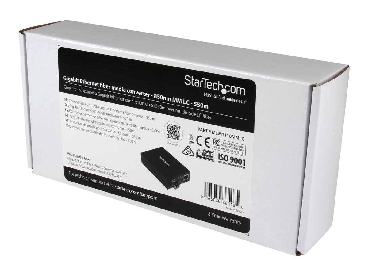 | Popis výrobku | StarTech.com Multimode (MM) LC Fiber Media Converter for 10/100/1000 Network - 550m - Gigabit Ethernet - 850nm - with SFP Transceiver (MCM1110MMLC) - konvertor médií s optickými vlákny - 10Mb LAN, 100Mb LAN, 1GbE |