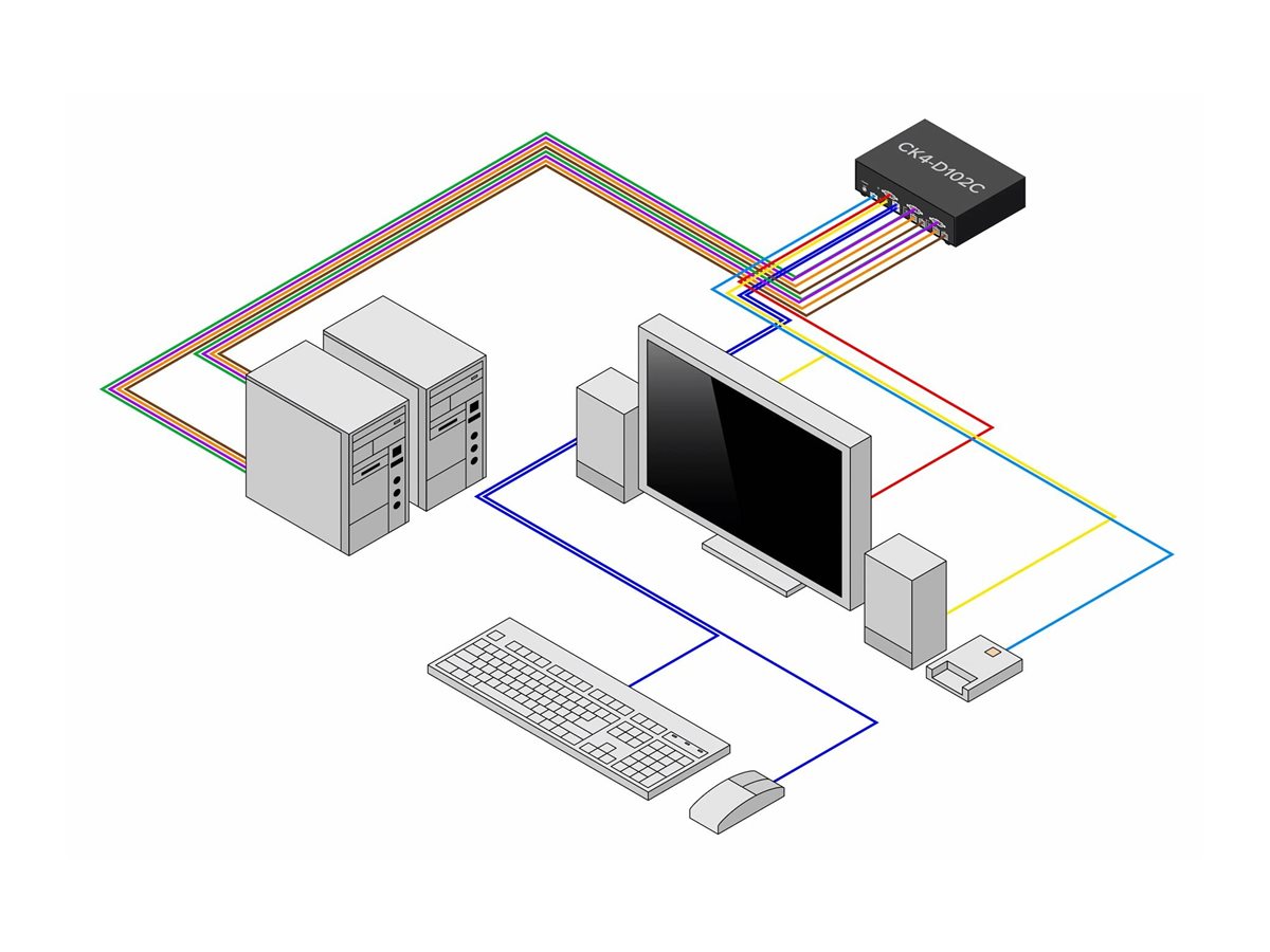 KVM přepínač StarTech.com CK4-D102C umožňuje ovládání dvou počítačů z jedné sady periferních zařízení. Díky podpoře rozlišení videa až 2560 x 1600 poskytuje jasný obraz pro výpočetní úlohy. KVM přepínač je vybaven tlačítkem pro přepínání mezi systémy, což zlepšuje multitasking. Jeho kovové pouzdro zajišťuje odolnost, zatímco soulad s normami jako FCC a RoHS podtrhuje jeho spolehlivost a bezpečnost pro různá prostředí. Tento KVM přepínač pracuje v teplotním rozsahu od 0 °C do 40 °C a funguje dobře v různých prostředích, takže je vhodný pro domácí i kancelářské použití.