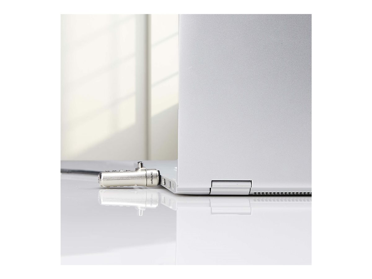 Slim Lock Noble Wedge Slot Compatible, 6,6 ft zamykatelný kabel od StarTech.com poskytuje účinnou ochranu vašeho notebooku. Tento bezpečnostní kabelový zámek je vyroben z oceli, což zaručuje jeho odolnost a činí jej spolehlivou volbou pro ochranu vašeho zařízení. Díky ochraně proti krádeži a odolnému provedení proti proříznutí pomáhá zabránit krádeži a zároveň nabízí snadné použití pomocí kombinovaného zámku. Otočení o 360° umožňuje flexibilní umístění, takže můžete snadno zabezpečit své zařízení v různých prostředích.