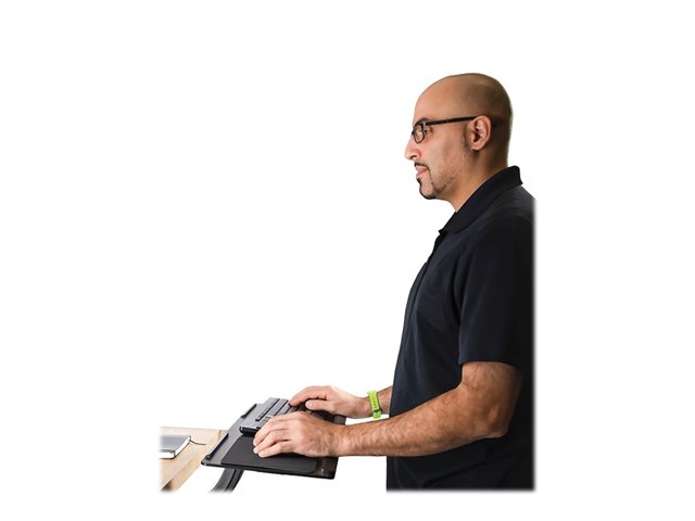 | Vlastnosti | Integrovaná opěrka zápěstí, tilt adjustment +15° to -13°, adjustable height 340 mm, otočný o 180 stupňů, up to 470 mm pull-out length, ledges from sliding off, integrovaná správa kabelů |