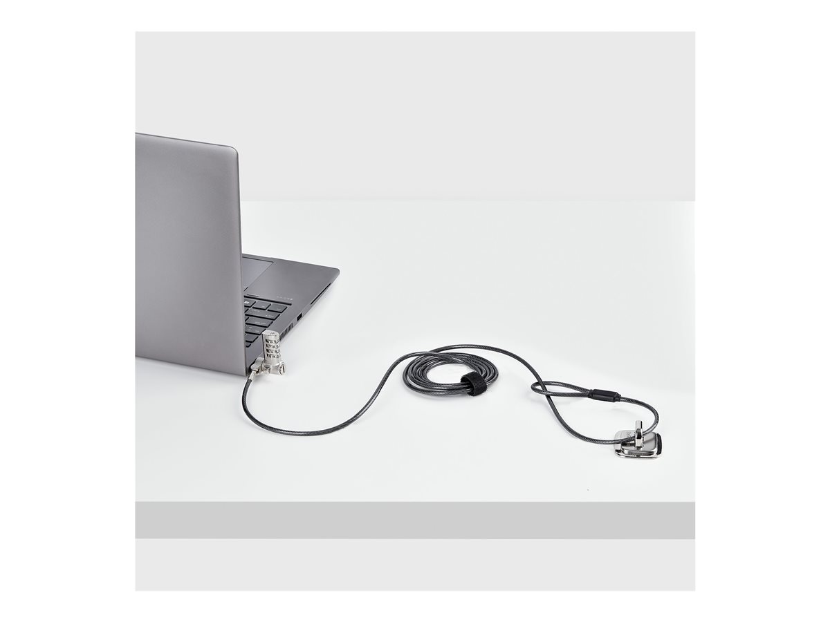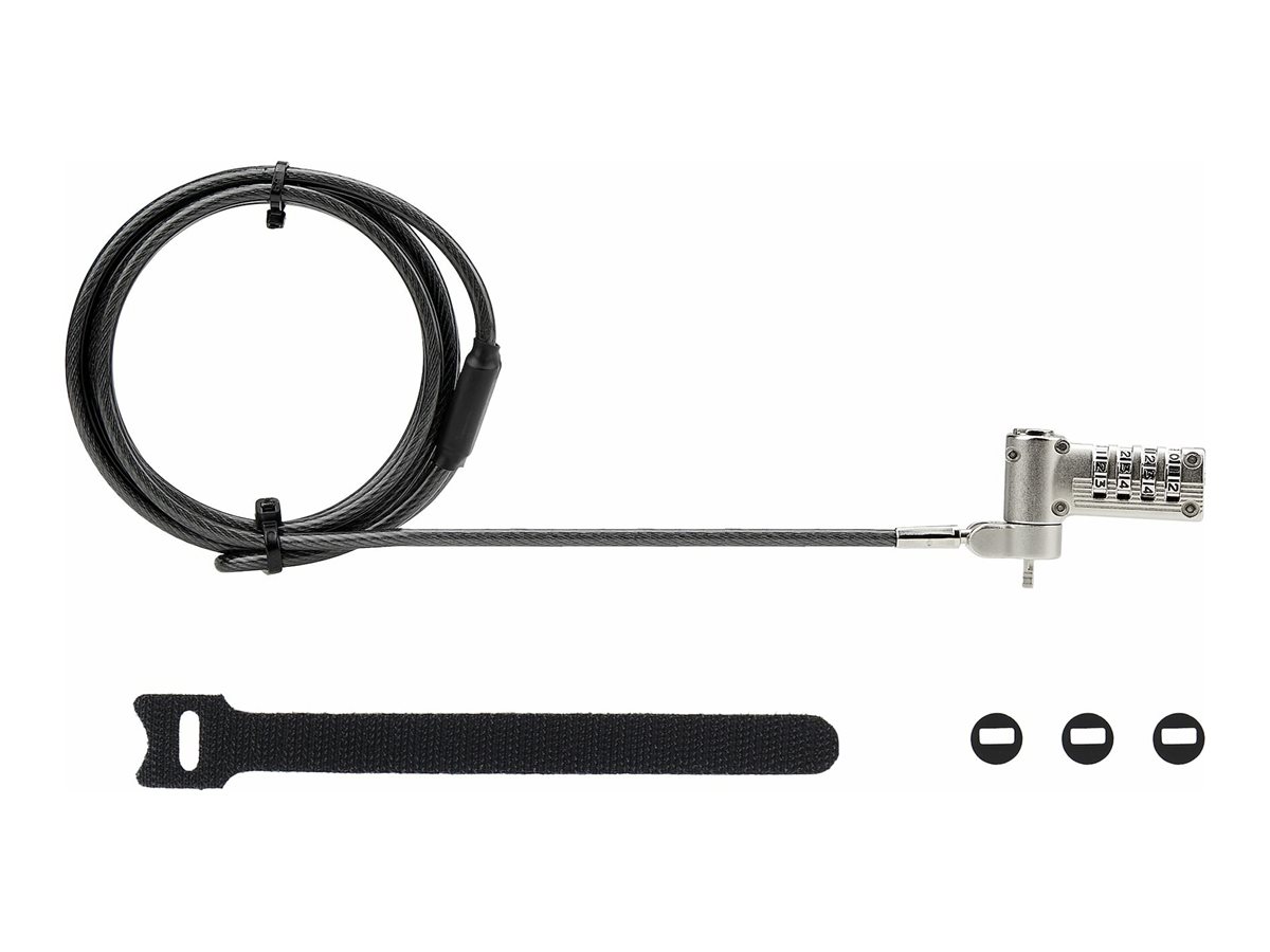 | Popis výrobku | StarTech.com Universal Laptop Lock 6.6ft (2m), Security Cable For Notebook Compatible With Noble Wedge/Nano/K-Slot; Keyless Combination Locking Cable - Anti-Theft Cut-Resistant Steel Cable (UNIVC4D-LAPTOP-LOCK) - bezpečnostní kabelový zámek |