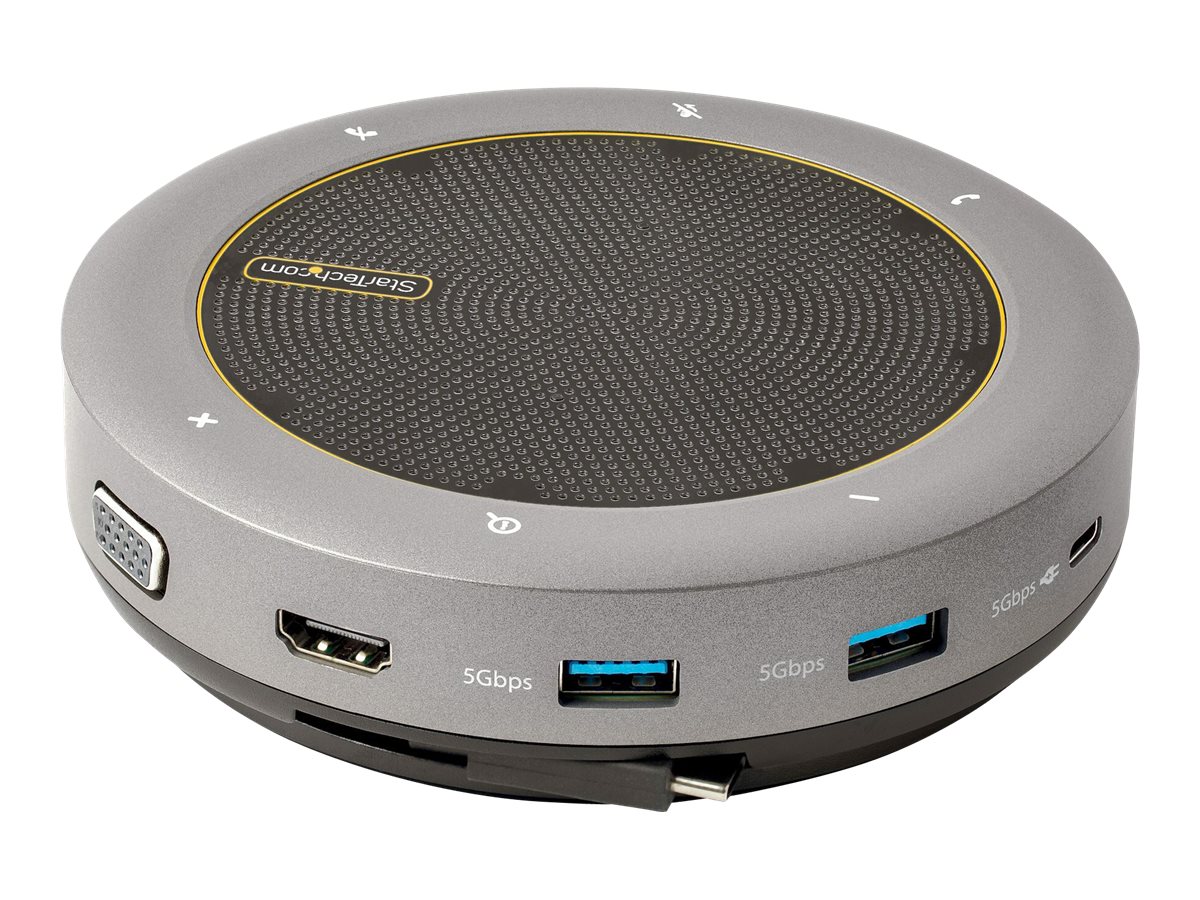 | Popis výrobku | StarTech.com USB-C Conference Speaker Mini Dock, Portable Boardroom Speaker and Multiport Adapter, USB-C to VGA or 4K 60Hz HDMI, 2x USB-A (5Gbps) Hub, Mic/Speaker - Teams/Zoom/Softphone Speakerphone (DKTBRSPMPD) - mini-dock - USB-C / Thunderbolt 3 / Thunderbolt 4 - HDMI, VGA |