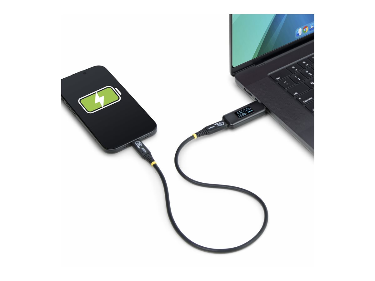 USB-C Power Tester od StarTech.com je univerzální digitální multimetr určený pro pečlivé řízení a monitorování napájení. Díky otočnému LCD displeji o 180° tento obousměrný tester napájení zjednodušuje sledování z jakéhokoli úhlu a zajišťuje pohodlné používání. Lehká polykarbonátová konstrukce zajišťuje odolnost a zároveň zachovává uživatelský komfort. Tento tester napájení je napájen z sběrnice a disponuje funkcí DisplayPort Alt Mode, díky čemuž je ideální pro ty, kteří potřebují zajistit efektivitu svých USB-C připojení. S podporou přenosu dat až 10 Gb/s a výkonem 240 W splňuje požadavky moderních zařízení. Je navržen pro provoz v teplotním rozsahu 0 °C až 40 °C a je v souladu s normami RoHS a USB Power Delivery 3.1, což zajišťuje bezpečnost a spolehlivost v různých prostředích.