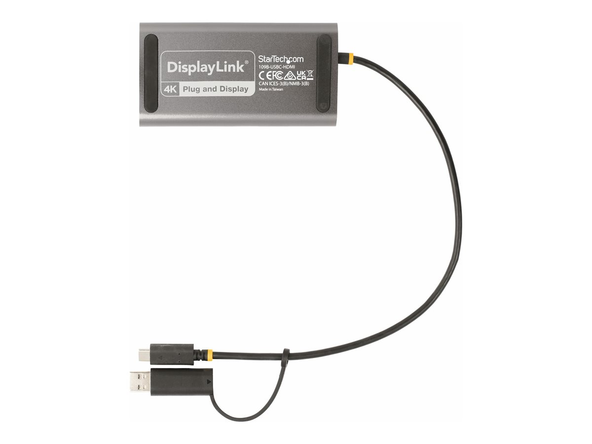 | Popis výrobku | StarTech.com USB-C to Dual-HDMI Adapter, USB-C or A to 2x HDMI, 4K 60Hz, 100W PD Pass-Through, 1ft (30cm) Built-in Cable, External Video Graphics Adapter - USB to HDMI Multi-Monitor Converter for Laptop (109B-USBC-HDMI) - video adaptér - HDMI / USB - kompatibilní s TAA - 30 cm |