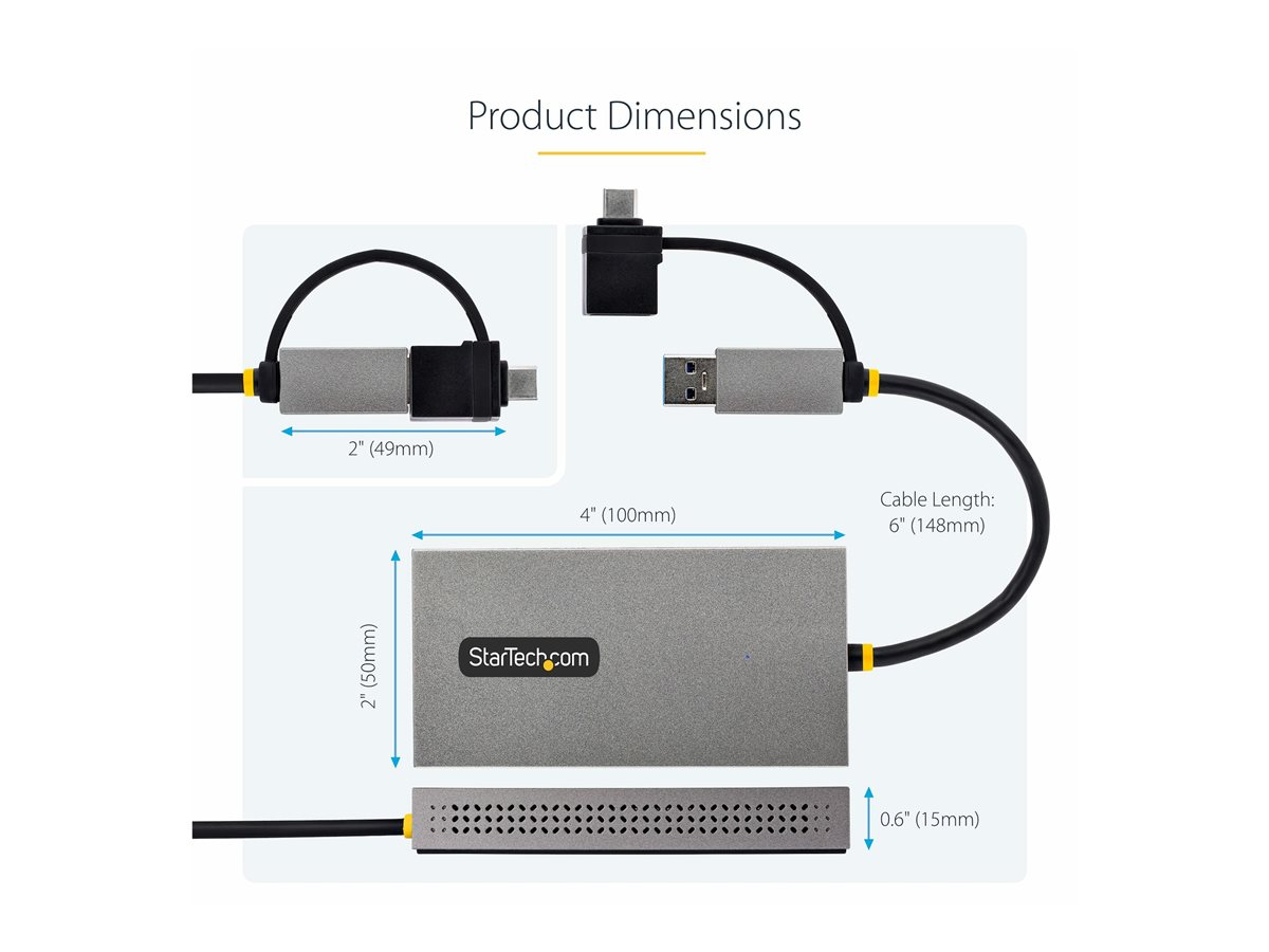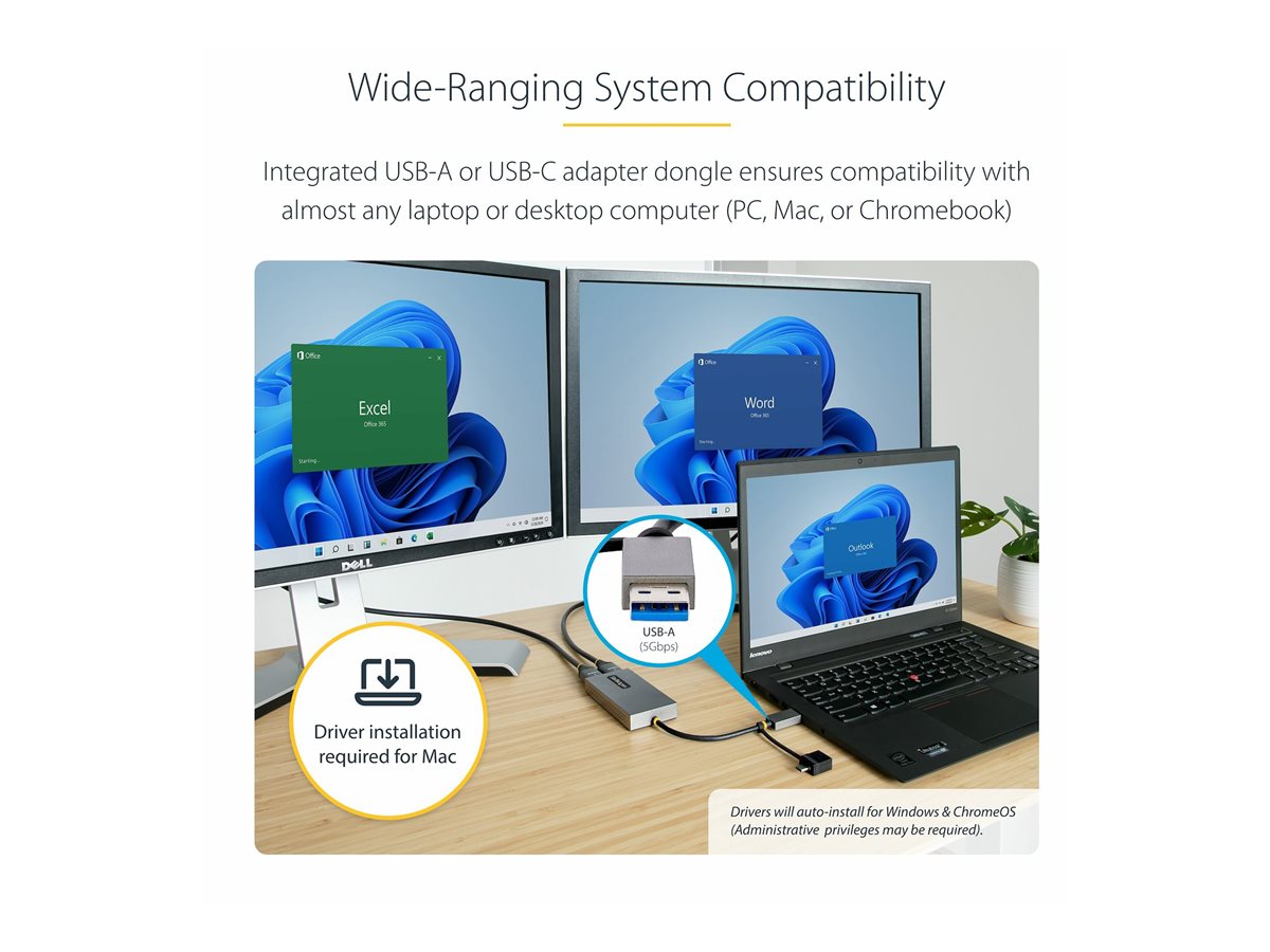 | Popis výrobku | StarTech.com USB to Dual HDMI Adapter, USB A/C to 2x HDMI Monitors (1x 4K 30Hz, 1x 1080p), Integrated USB-A to C Dongle, 4in/11cm Cable, Windows & macOS - USB 3.0 to HDMI Multi-Monitor Display Adapter for Laptop (107B-USB-HDMI) - video adaptér - HDMI / USB |