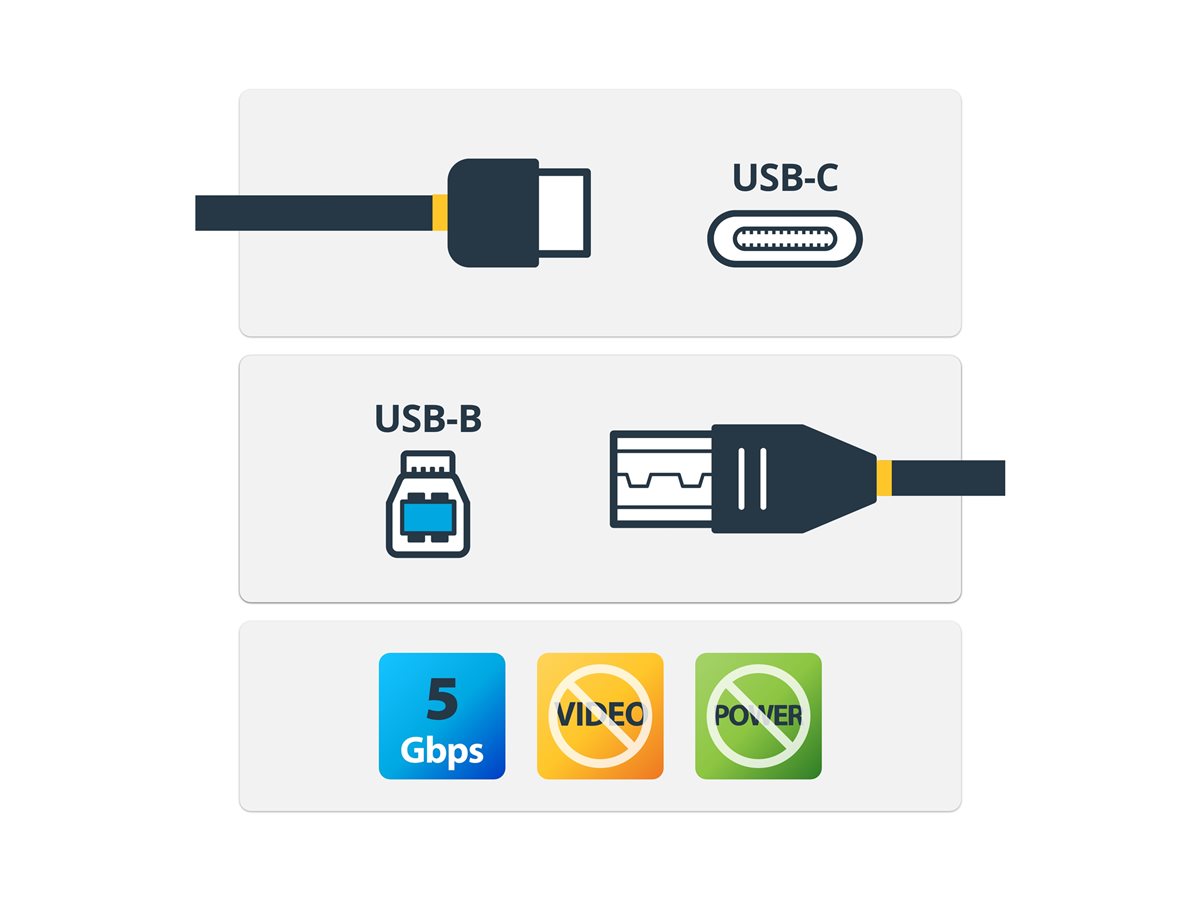 Kabel USB C na USB B pro tiskárny od společnosti StarTech.com poskytuje spolehlivé připojení pro vaše zařízení USB a zajišťuje efektivní přenos dat maximální rychlostí 5 Gb/s. Díky délce 6 ft / 2 m nabízí tento kabel flexibilitu a pohodlí při připojování tiskáren nebo jiných periferních zařízení k zařízením USB typu C. Jeho odolná konstrukce a shoda s normami USB 3.0/USB 3.1 Gen 1 zajišťují kompatibilitu a výkon, což z něj činí praktickou volbu pro domácí i kancelářské použití.