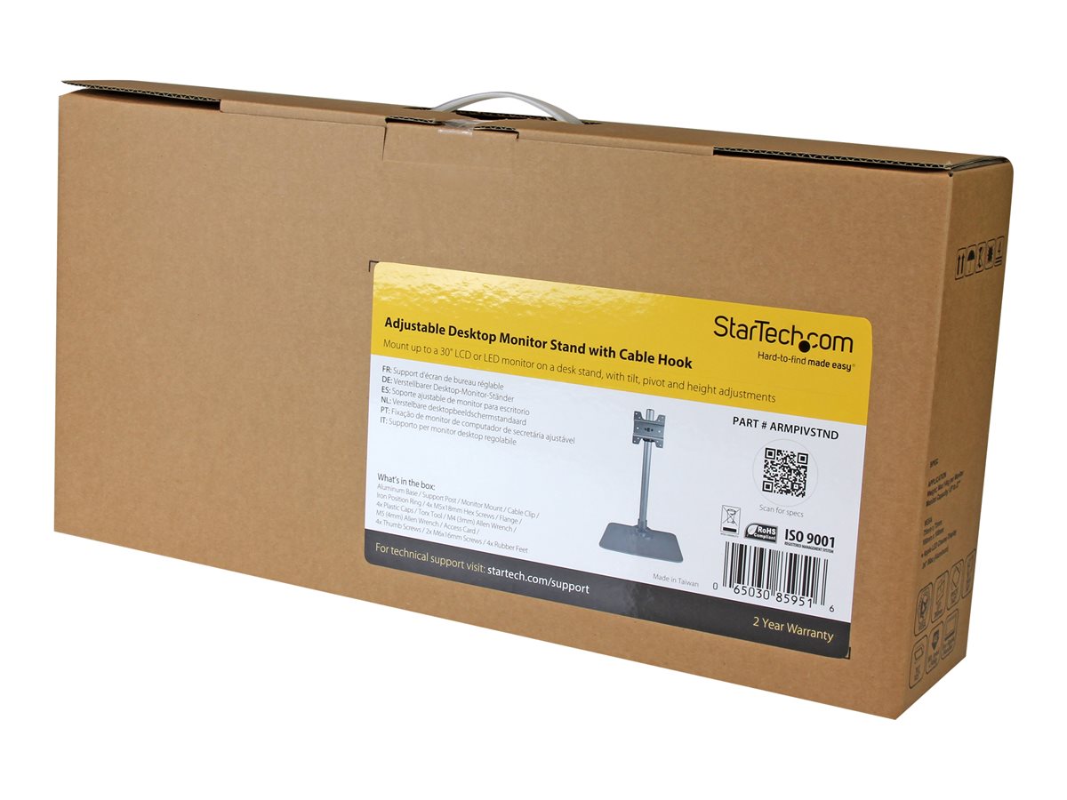 | Popis výrobku | StarTech.com Single Monitor Stand - Adjustable - Supports Monitors 12" to 34" - Premium - Single Screen VESA Monitor Mount Stand - Silver (ARMPIVSTND) montážní sada - pro Displej LCD - stříbrná |