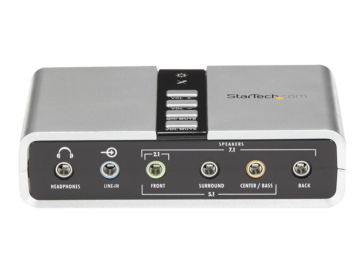 | Popis výrobku | StarTech.com 7.1 USB Sound Card - External Sound Card for Laptop with SPDIF Digital Audio - Sound Card for PC - Silver (ICUSBAUDIO7D) - zvuková karta - USB 2.0 |