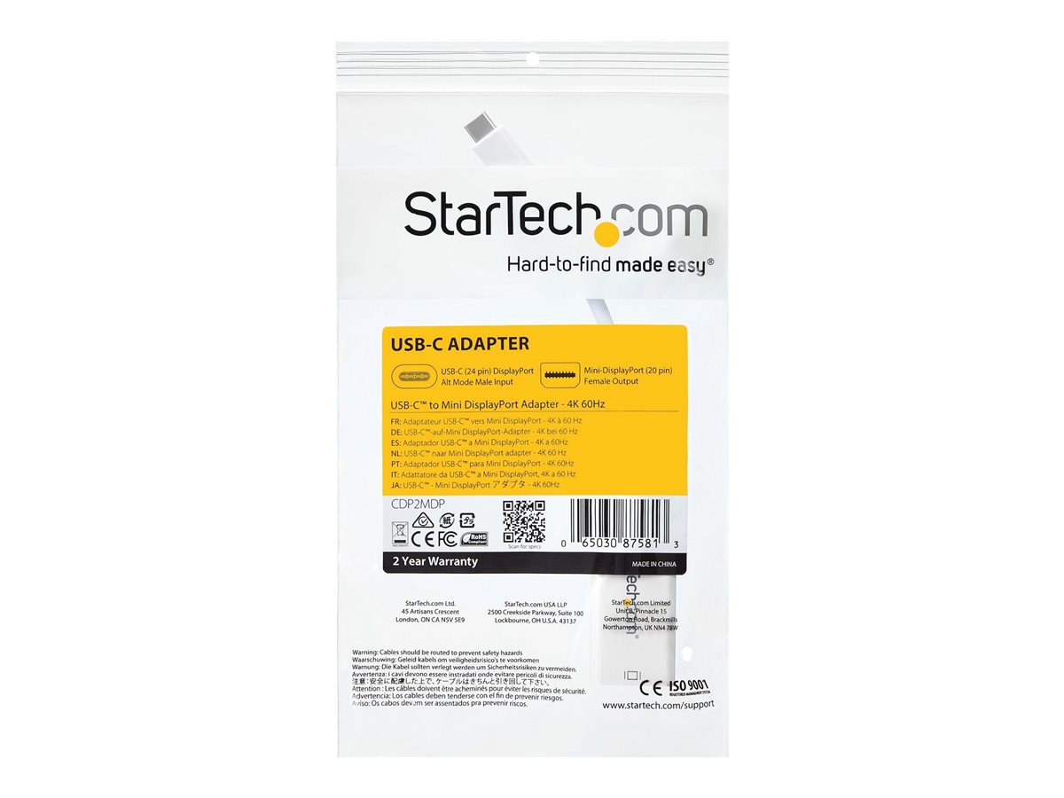 | Popis výrobku | StarTech.com USB-C to Mini DisplayPort Adapter - 4K 60Hz - White - USB 3.1 Type-C to Mini DP Adapter (CDP2MDP) - video adaptér - USB-C do Mini DisplayPort - 18 cm |