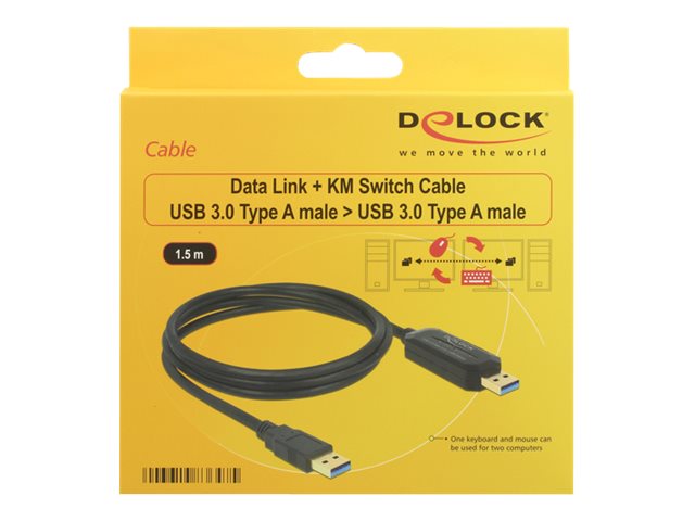 Tento kabel od Delocku může být použit pro připojení dvou počítačů. Díky němu můžete přenášet data oběma směry rychlostí USB 3.0. Dále můžete používat jednu myš a jednu klávesnici pro oba počítače. Příslušný počítače můžete aktivovat jen pohybem kurzoru z jednoho do druhého displeje.