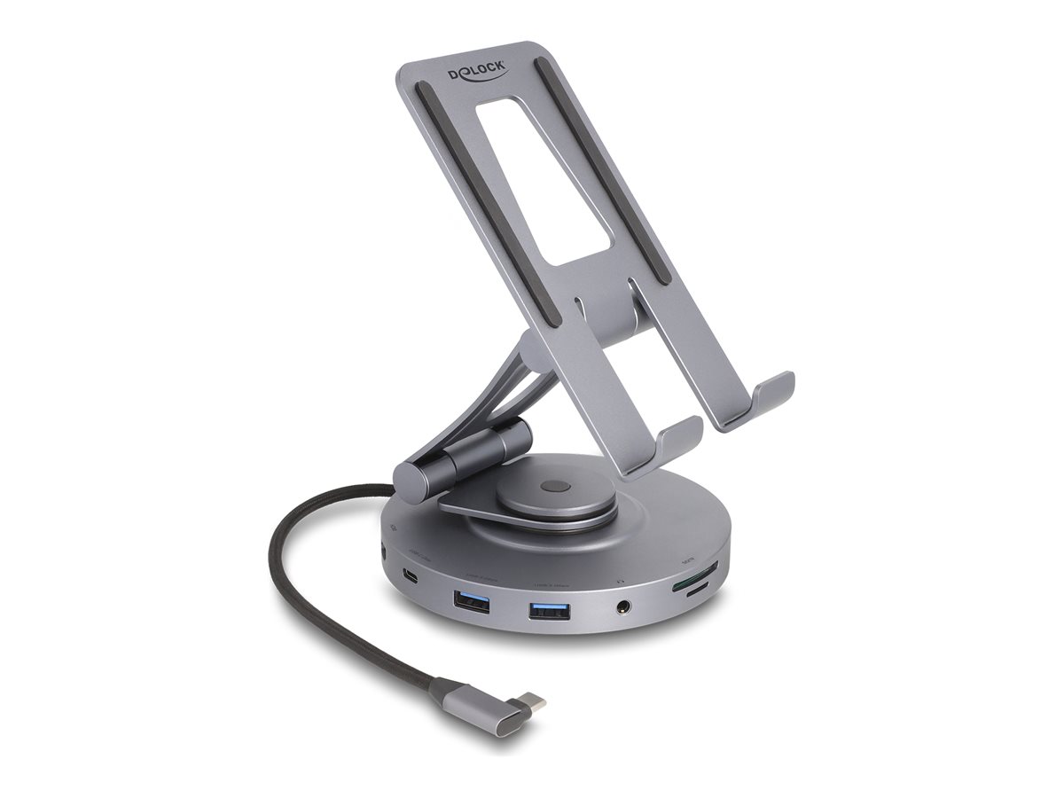 Objevte řešení pro rozšíření konektivity vašeho zařízení pomocí dokovací stanice Delock. Toto příslušenství slouží jako dokovací stanice a zároveň jako stojan pro tablet, takže je vhodné pro uživatele notebooků i tabletů. Díky integrovanému kabelu USB-C a řadě portů včetně SuperSpeed USB 3.0, HDMI a kombinovaného konektoru pro sluchátka/mikrofon nabízí komplexní možnosti připojení. Ať už se chcete připojit k displejům s vysokým rozlišením, nabíjet své zařízení nebo jen rozšířit možnosti portů, tato dokovací stanice splní vaše potřeby. Její kompaktní design s kovovým krytem a gumovými podložkami zajišťuje odolnost a zároveň flexibilitu díky funkci otáčení o 360°. Navíc podporuje HDCP pro sledování chráněného obsahu, režim DisplayPort Alt a je kompatibilní s technologií Samsung DeX, což zvyšuje váš multimediální zážitek. Je ideální pro notebooky s úhlopříčkou do 14" a je vhodným společníkem pro práci i zábavu.