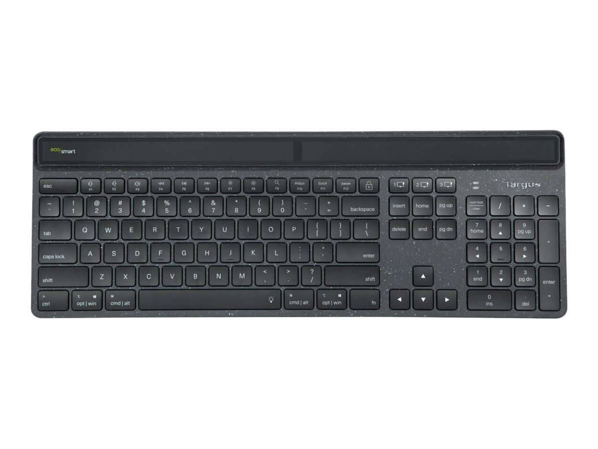 | Popis výrobku | Targus EcoSmart - klávesnice - udržitelné získávání energie - QWERTY - britská - černá Vstupní zařízení |
