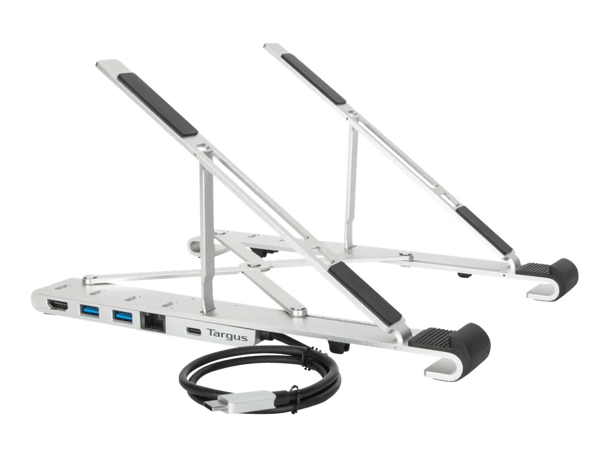 | Popis výrobku | Targus Portable Stand with Integrated Dock - kotvící stanice + stojan pro notebook - USB-C 3.2 Gen 1 / Thunderbolt 3 - HDMI - 1GbE |