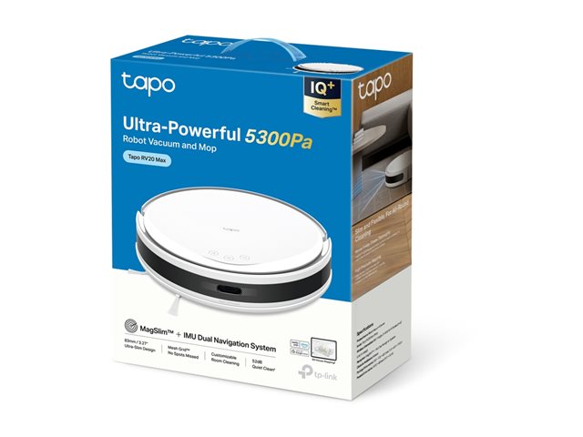 Robotický vysavač Tapo RV20 Max nabízí účinné čištění všech typů podlah a je vybaven bezsáčkovým designem s objemem nádoby na prach 0,3 litru. Jeho pokročilý filtr HEPA zajišťuje vysoce kvalitní filtraci vzduchu, díky čemuž je vhodný pro domácnosti s domácími mazlíčky a účinně odstraňuje alergeny a prach. Dvojí způsob čištění – suchý a mokrý – ho činí univerzálním pro různé potřeby úklidu. Díky sacímu tlaku 5,3 kPa, nastavitelnému sání a automatickému posílení výkonu na kobercích se snadno přizpůsobí různým povrchům. Tento vysavač je vybaven duálním navigačním systémem LiDAR+IMU, který poskytuje 3D mapování pro přesné čisticí dráhy. Integrace technologie IQ+ Smart Cleaning optimalizuje účinnost čištění. Uživatelé mohou těžit z programovatelných intervalů čištění a navigace v místnosti pro přizpůsobené čištění. Tapo RV20 Max je také kompatibilní s IoT, což umožňuje integraci s inteligentními domácími systémy, jako jsou Google Assistant a Alexa, a zvyšuje pohodlí díky hlasovému ovládání. Vyzkoušejte inteligentní řešení pro úklid bez použití rukou s Tapo RV20 Max.
