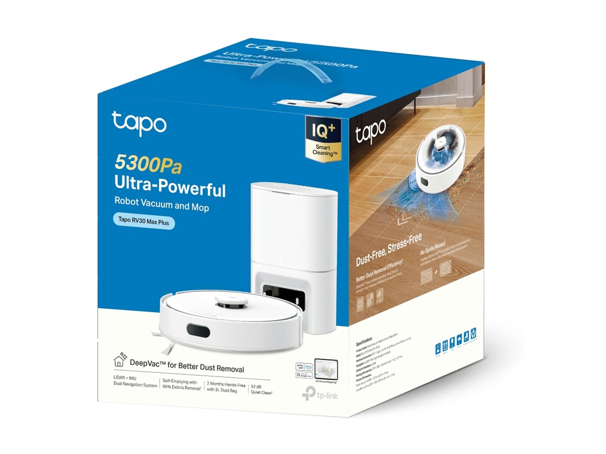 TP-Link Tapo RV30 Max Plus je univerzální robotický vysavač navržený pro zjednodušení úklidových prací. Díky bezsáčkovému designu tento vysavač účinně sbírá prach a nečistoty a disponuje nádobou o objemu 0,3 litru doplněnou filtrem HEPA, který zachycuje jemné částice. Je vybaven technologiemi, jako je 3D mapování a duální navigace LiDAR+IMU, díky nimž se pohybuje po různých místnostech a zajišťuje tak dokonalý úklid. Zařízení také využívá technologii DeepVac pro účinné odstraňování zvířecích chlupů, což z něj činí ideální volbu pro domácnosti s chlupatými mazlíčky.