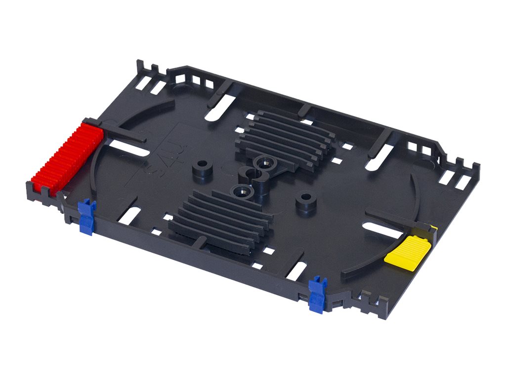 Kazeta svarů pro 12 heat-shrink vč. pantů a držáku vláken. Součástí produktu jsou dva držáky svarů (2x 6 heat-shrink), držák vláken s instalačním nástrojem a 2 panty pro stohování kazet.